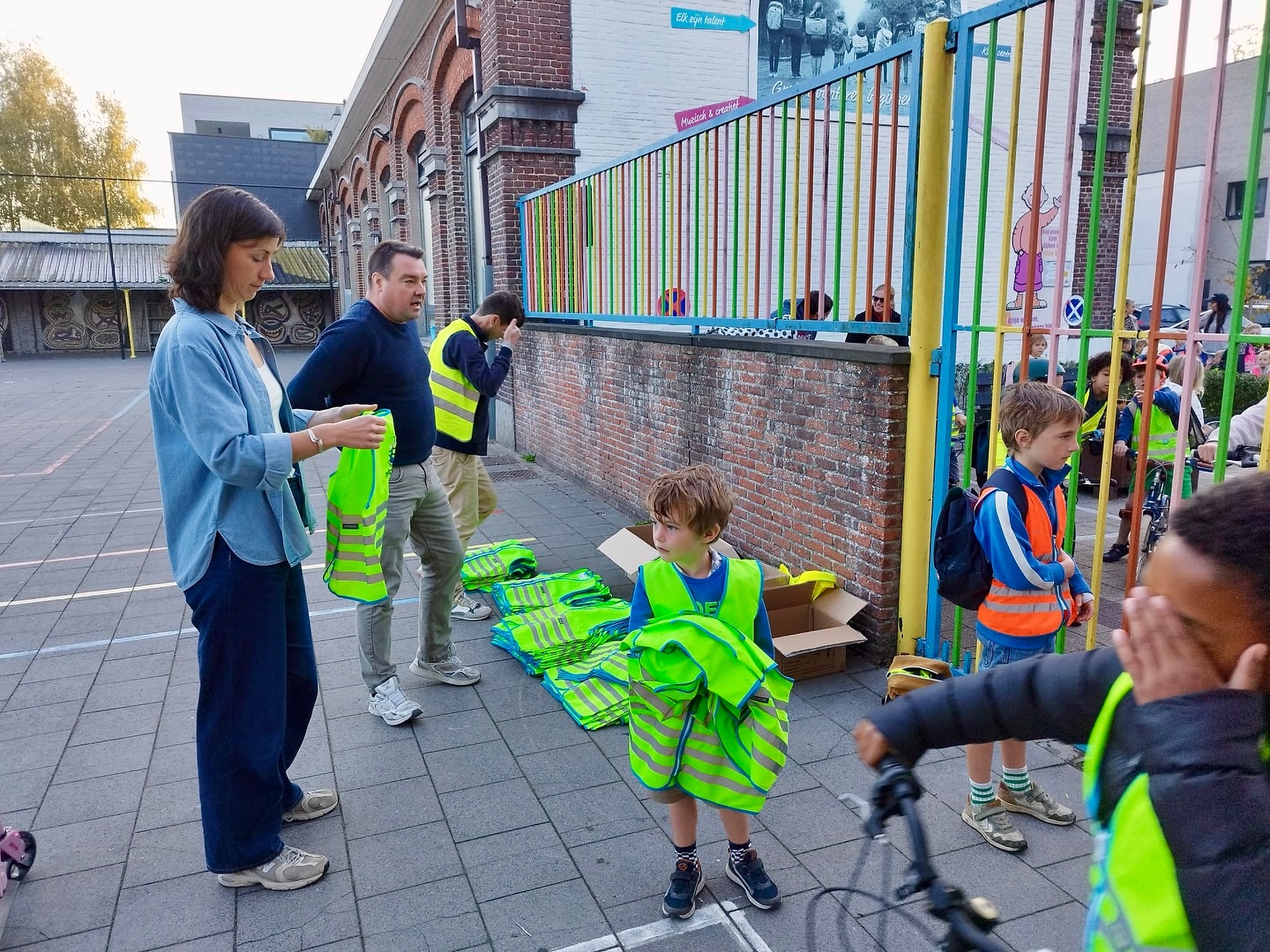 Bij aankomst aan de schoolpoort kregen de leerlingen een nieuw fluohesje. We willen graag onze sponsor Michimmo bedanken om elke leerling te voorzien van een prachtig nieuw exemplaar. Ons oudercomité zorgde voor de verdeling ervan.